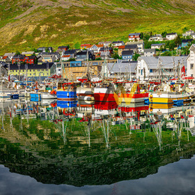 hafen,norwegen,spiegelung … ngsvåg-norwegen-nord kapp … norden norwegens. honni